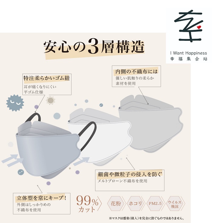 掛耳部分:聚氨酯、聚酯 鼻線部分:聚乙烯 產地: 中國